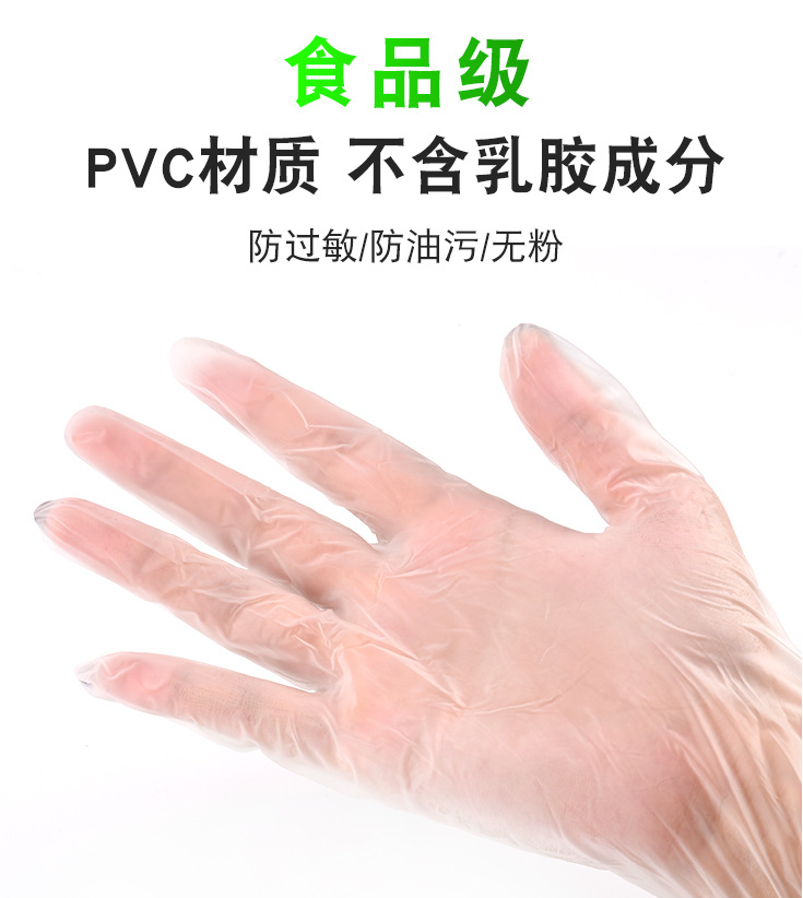 食品級一次性PVC手(shou)套,pvc材(cai)質(zhi),不(bu)含乳膠成分,防過敏/防油(you)污/無(wu)粉;防護雙手(shou),加厚耐...