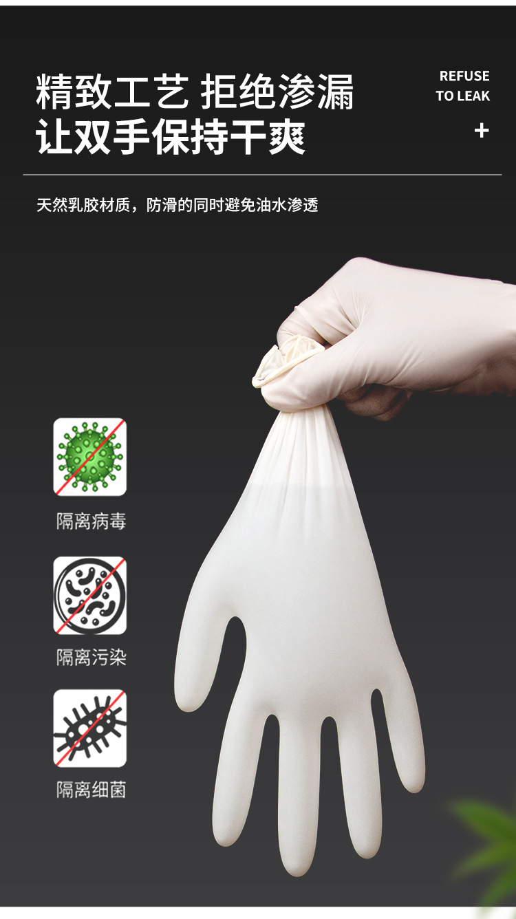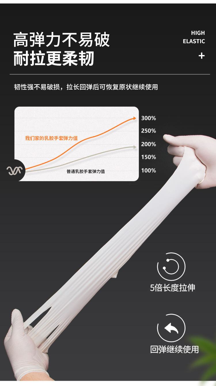 食品(pin)級(ji)一次性乳膠手套,超高彈(dan)性,專業(ye)防護,防水防油;防止手部接(jie)觸細(xi)菌;彈(dan)性大(da),貼(tie)合...